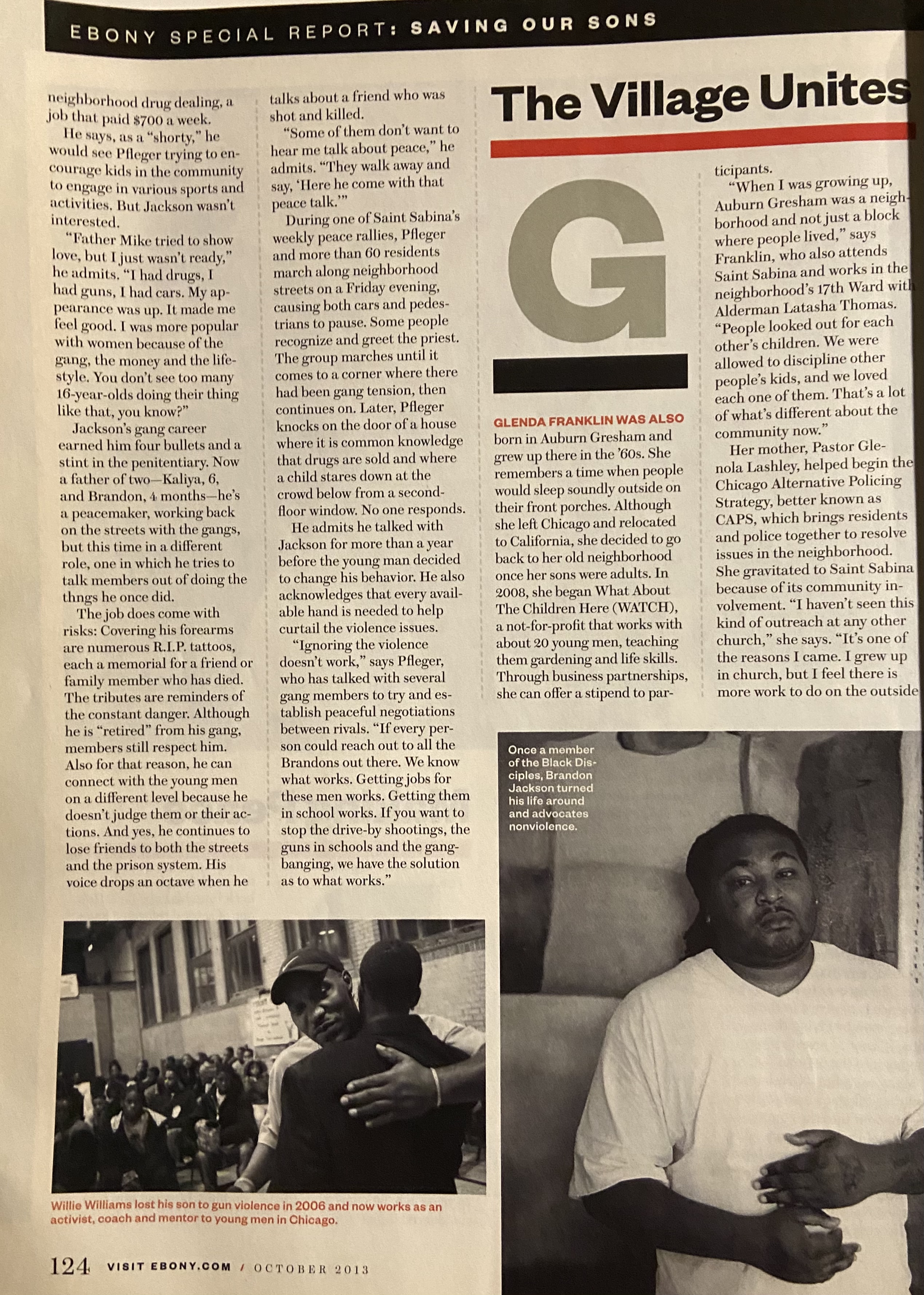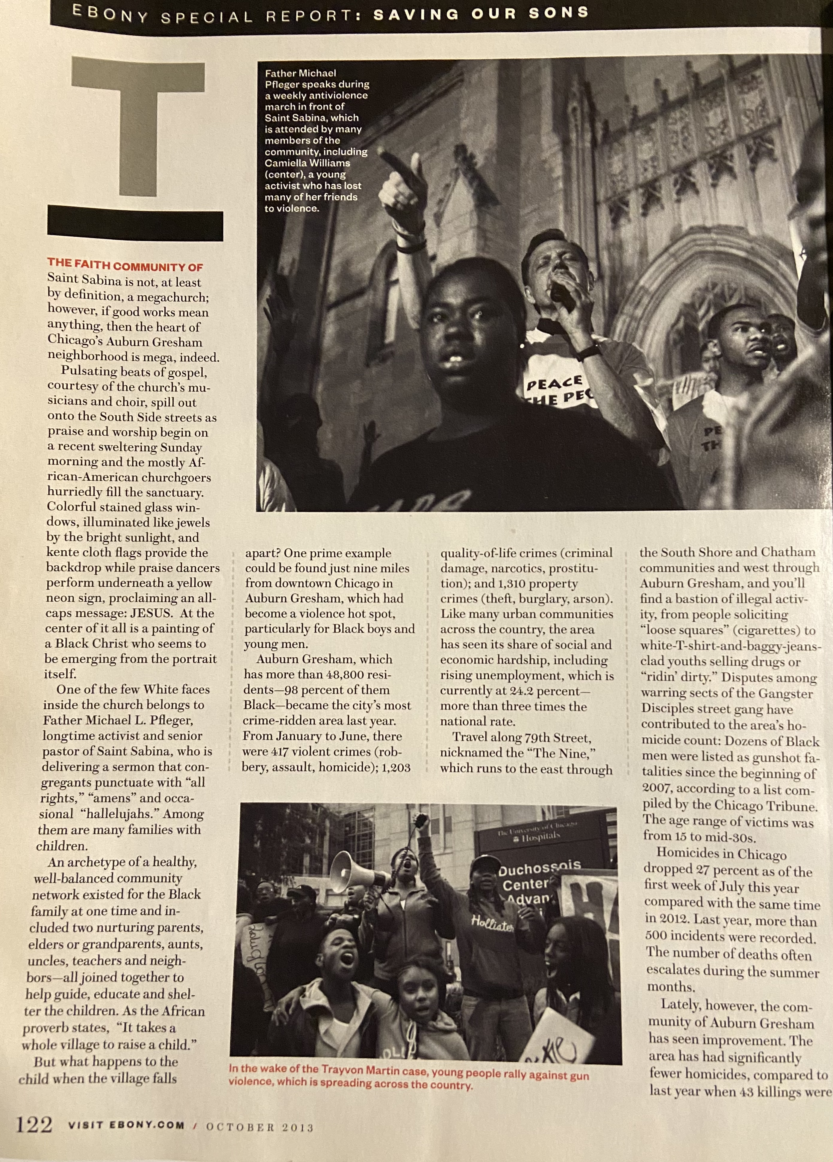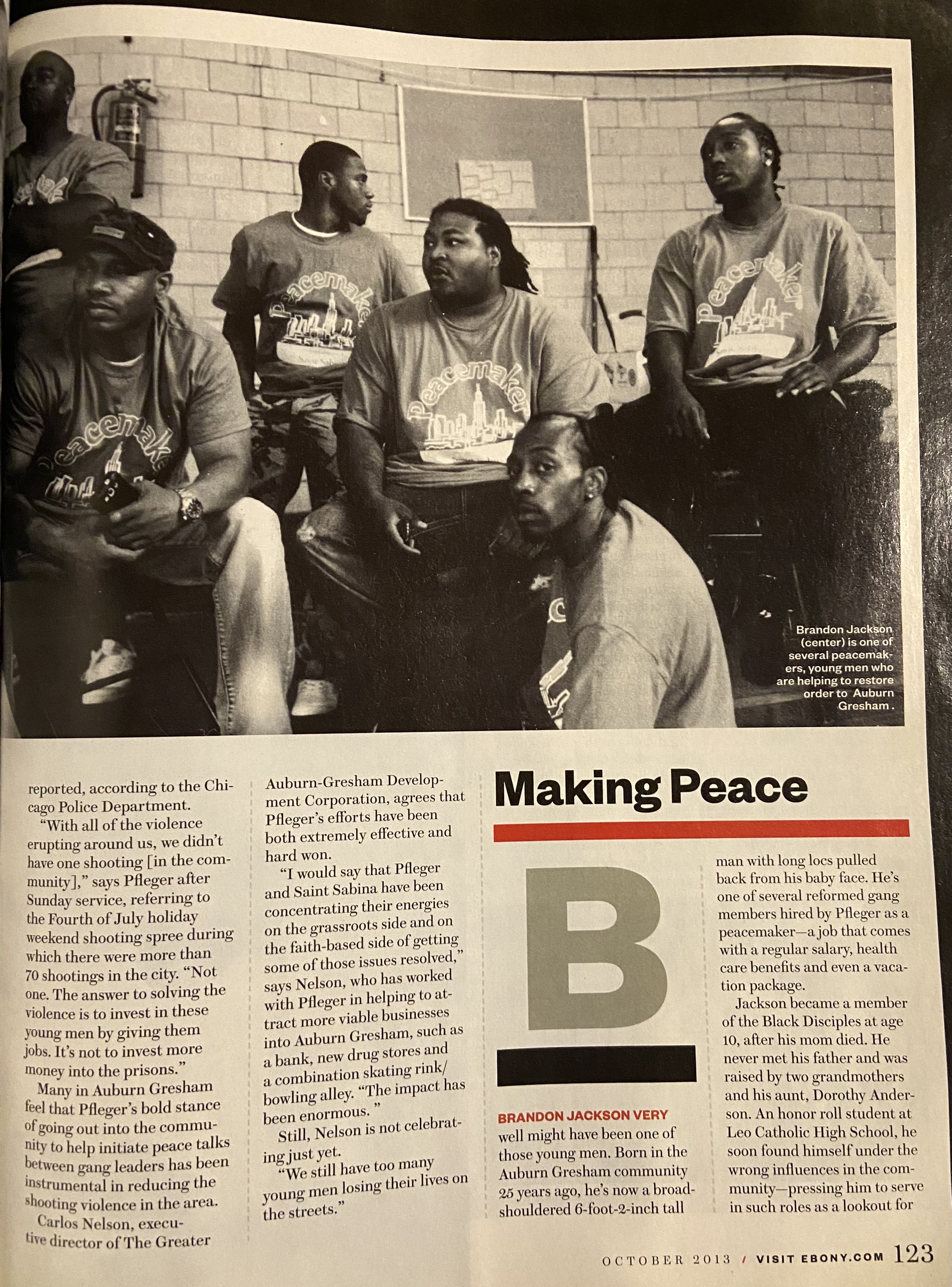 The interviews with Christian, Corey and Eugene were originally published in St. Sabina Church’s newsletter, The St. Sabina Times in 2014. More on The Peacemakers violence intervention program was printed in the October 2013 issue of Ebony Magazine as a part of Shirley Henderson’s 6-part series “The Village Keepers” copied below.